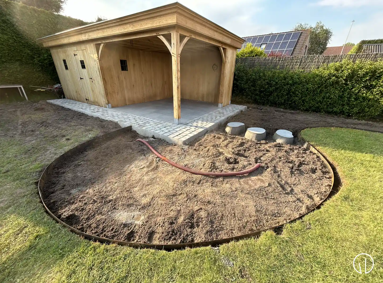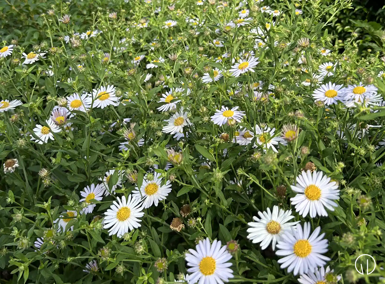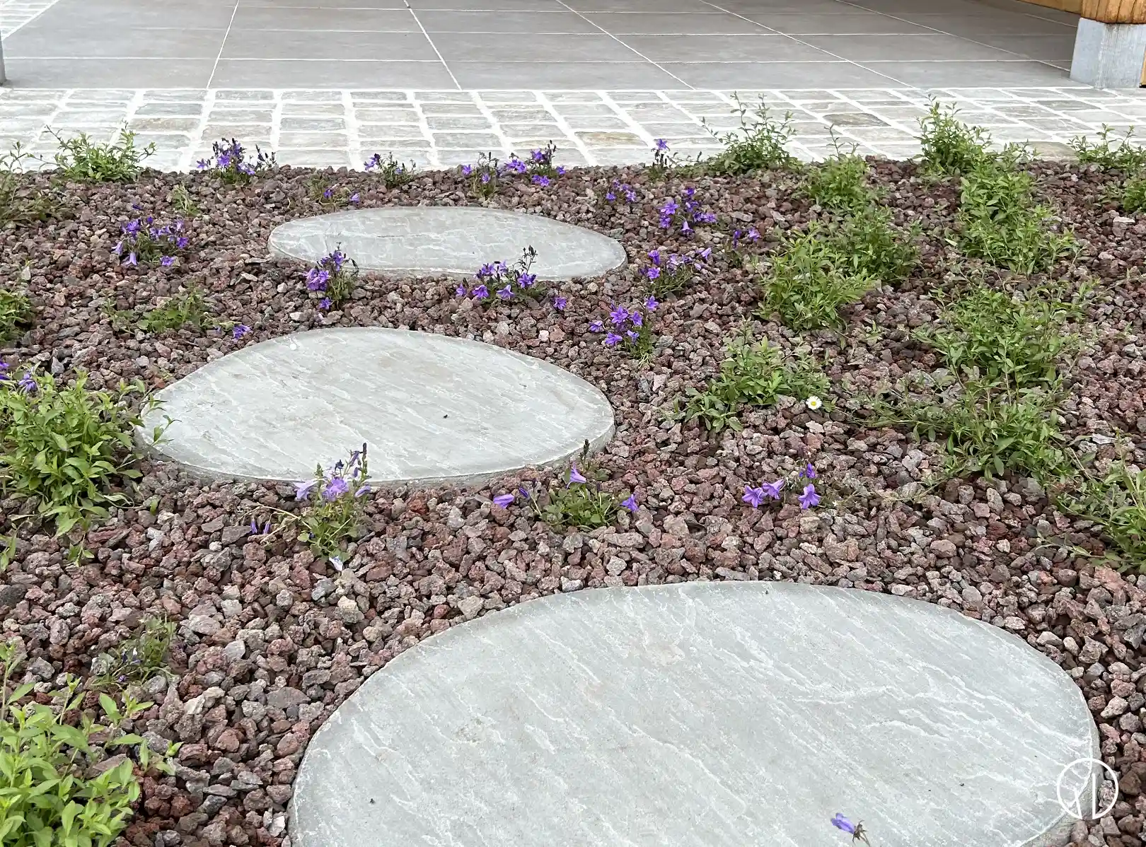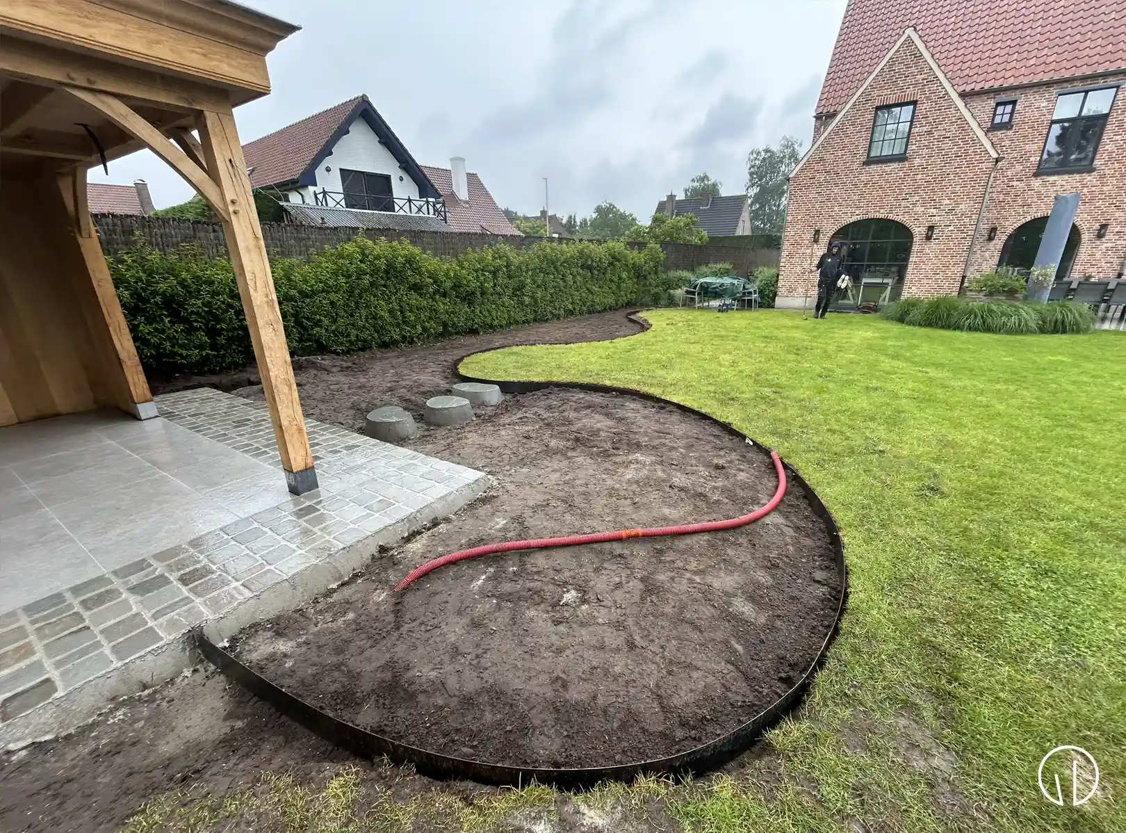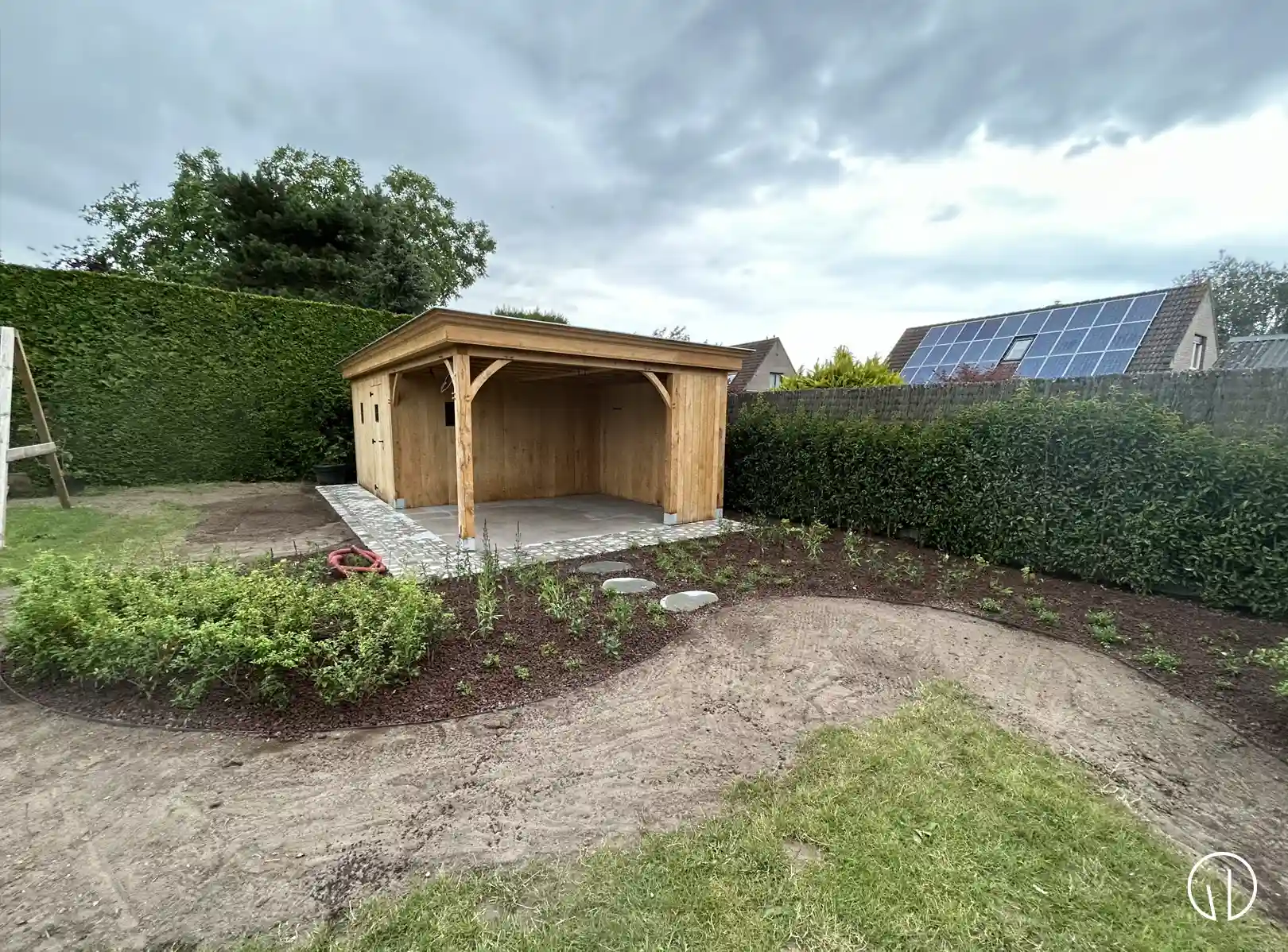 Een sfeervolle tuin vol weelderig groen en kleurrijke bloei.